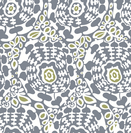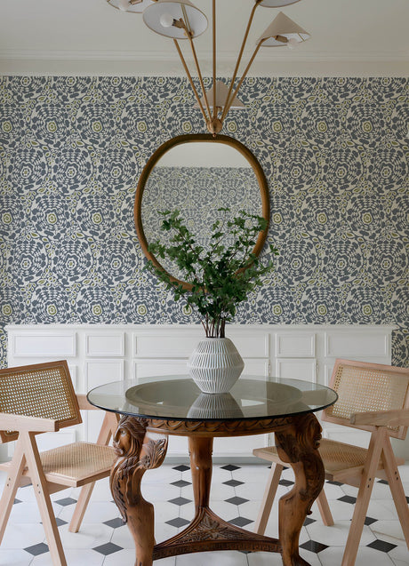 Tulum Denim Surreal Shapes Blue Wallpaper with Modern Abstract Metallic Design - Brewster 4135-72702