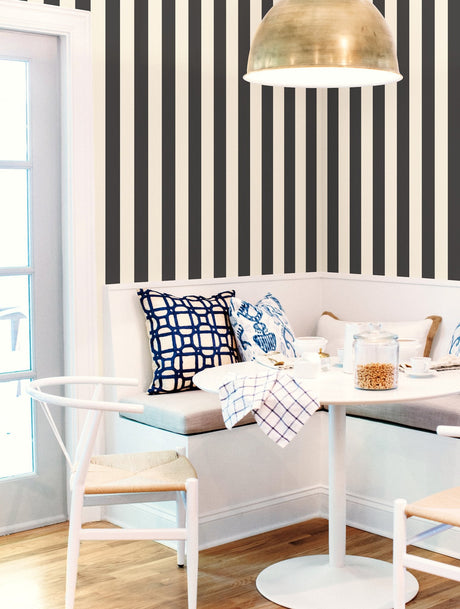 3-in Stripe Black & White Wallpaper with Stripes Pattern, Sure Strip Prepasted - York ST5691SAM