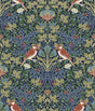 Garden Aviary Jewel Peel & Stick Wallpaper in Blue/Red Botanical Damask with Birds - York RMK12755PLW