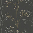 - Black peel and stick wallpaper by RoomMates Décor featuring imagery of cherry blossom trees