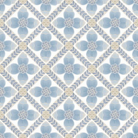 Mimi Blue Quilted Floral Peel & Stick Wallpaper with Farmhouse Style - York PSW1583RL