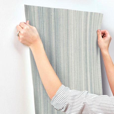 Linette Navy Fabric Stripe Wallpaper with Country Fabric & Woven Textures Pattern - 4072-70067