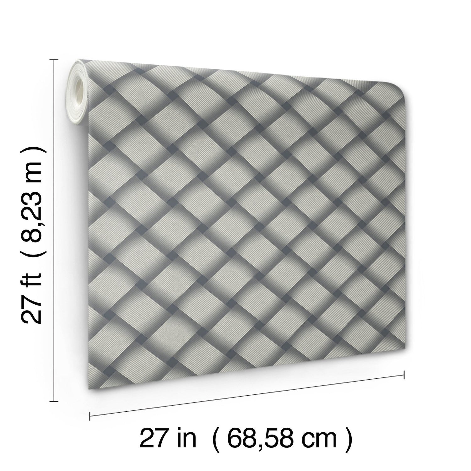 A fresh take on an organic classic, the large-scale plaiting of Bayside Basket Weave becomes strips of shaded, dimensional grey-and-white pinstriping offset by rich blue. This Bayside Basket Weave Wallpaper measures approximately 27 inches wide by 27 feet long, measuring approximately 60.8 square feet per roll. Organic simplicity and lustrous adornment for the modern home.