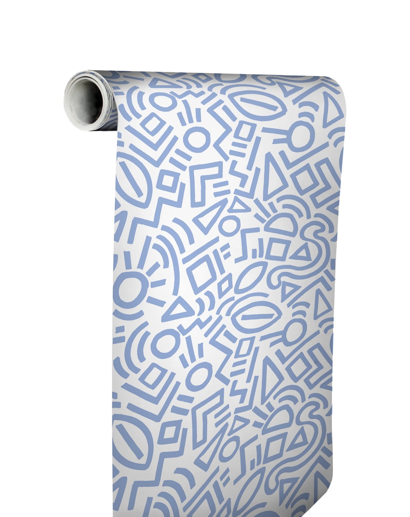 Incorporate an edgy, contemporary doodle design into your space with this print designed by Aelfie! Movement-filled graphics are inked in soft periwinkle-blue against crisp white. Periwinkle Doodle Abstract Peel and Stick Wallpaper comes on one roll that measures 20.5 inches wide by 18 feet long.