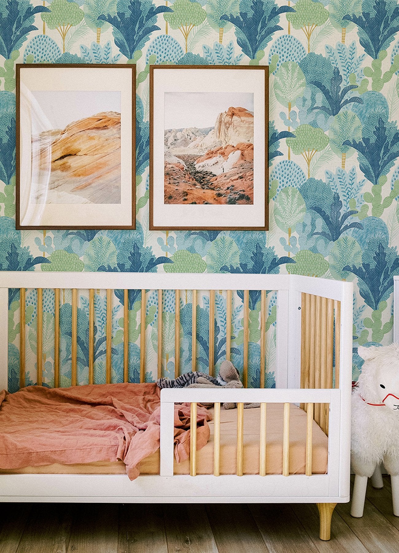 Travel through the tropics with this botanical print! Teal, blue, and green trees create a watercolor bohemian jungle in this peel and stick wallpaper print. Teal Keilani Peel and Stick Wallpaper comes on one roll that measures 20.5 inches wide by 18 feet long.