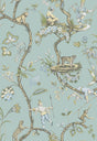 Robin's Egg Blue Chinoise Exotique Peel & Stick Wallpaper with Chinoiserie Hunting Scene Pattern - NuWallpaper SCS3846