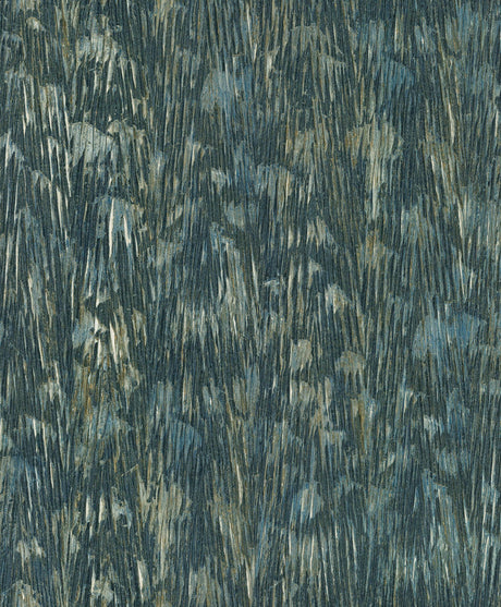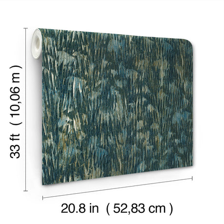 Gilded Plume Teal Wallpaper with Metallic Feathered Texture - York FM1001