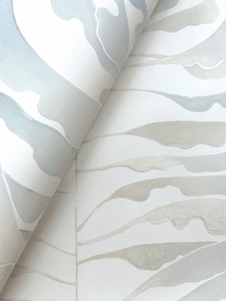 Leaf Column Spa Blue Wallpaper with Metallic Botanical Modern Style - York FM1046