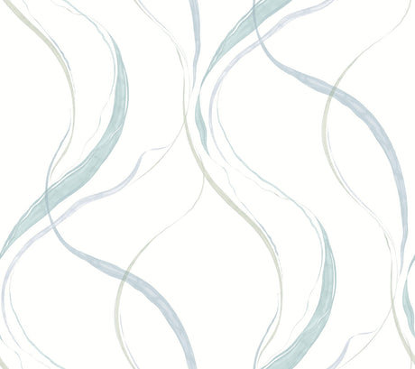 Ink Flow Seaglass Wallpaper with Modern Organic Ribbon Pattern - York Wallcoverings FM1094