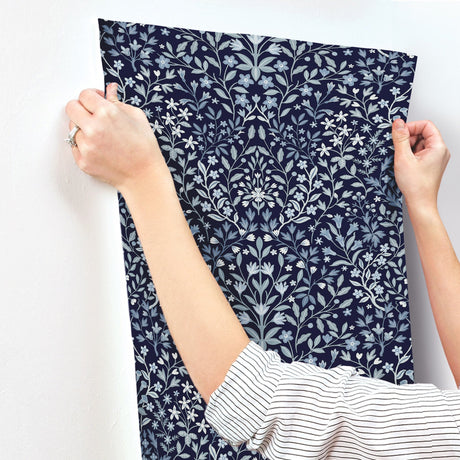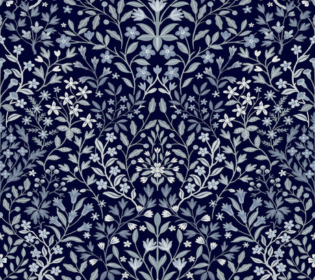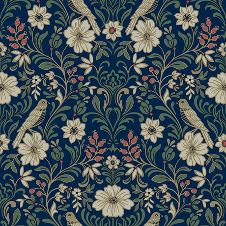 Colette Navy Wallpaper with Botanical Birds and Blooms - York MF4745