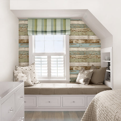 Gypsy Floral Blue & Green Peel & Stick Wallpaper with Modern Floral Pattern - NuWallpaper NU1697