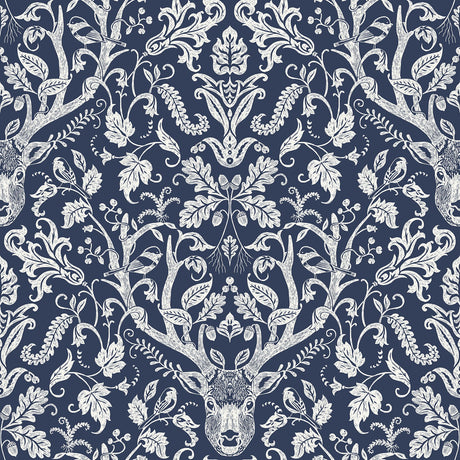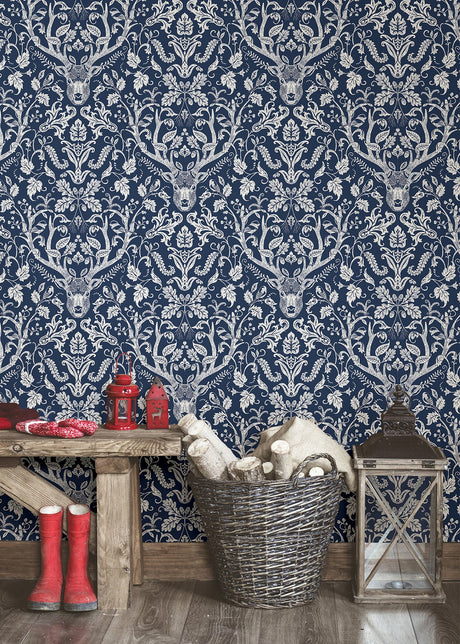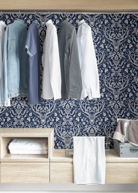 Guildford Blue Peel & Stick Wallpaper with Floral Damask Pattern - NuWallpaper NUS3547