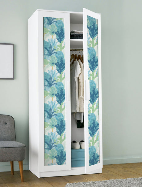 Keilani Teal Peel & Stick Wallpaper with Botanical Trees - NuWallpaper NUS4975