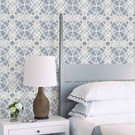 Zazen Blue Geometric Wallpaper with Modern Abstract Floral Dot Motif - A?Street Prints 2764-24335