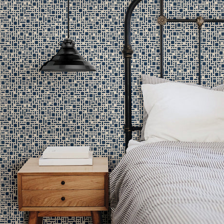 Grand Trellis Navy Peel & Stick Wallpaper with Modern Geometric Pattern - NuWallpaper NUW1648
