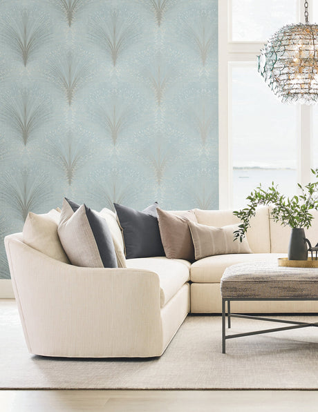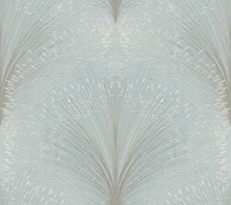 Papyrus Plume Sky Blue Wallpaper with Metallic Botanical Motif - York OI0685