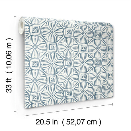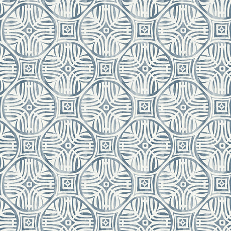 Button Block Blue Geometric Wallpaper with Hand-Drawn Quilt Motif - Chesapeake 3125-72305