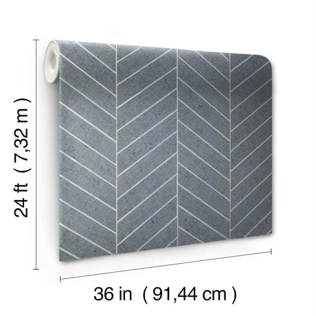 Atelier Herringbone Steel Blue Wallpaper with Metallic Feature Wall Grasscloth - York HO2107GV
