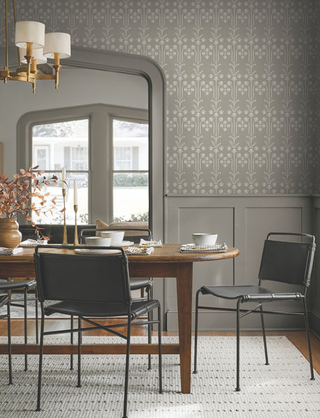 Gwendolyn Ivory & Grey Wallpaper with Floral Vine Motif, Farmhouse Style - York MF4753