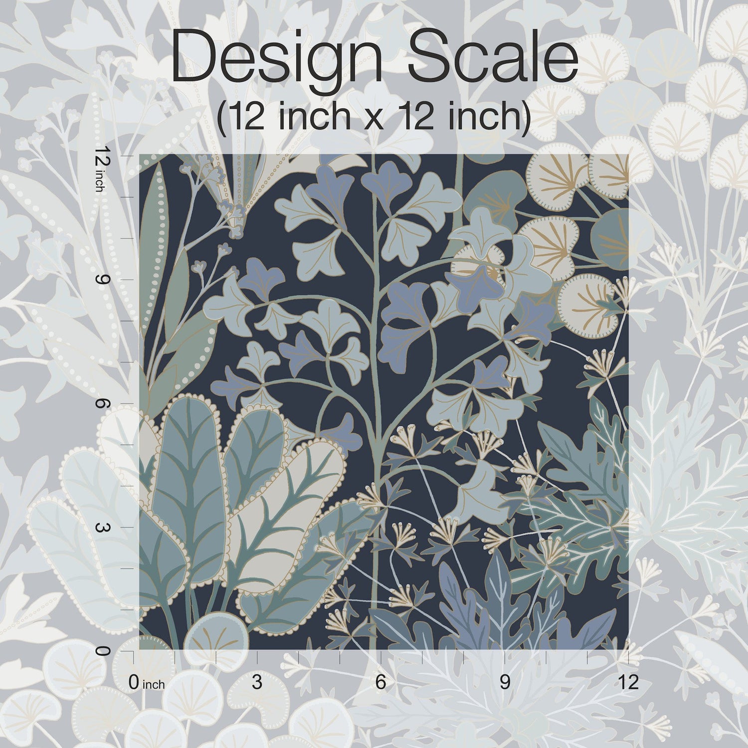 Detailed Name: York Wallcoverings Forest Floor Navy Wallpaper, 27-in by 27-ft