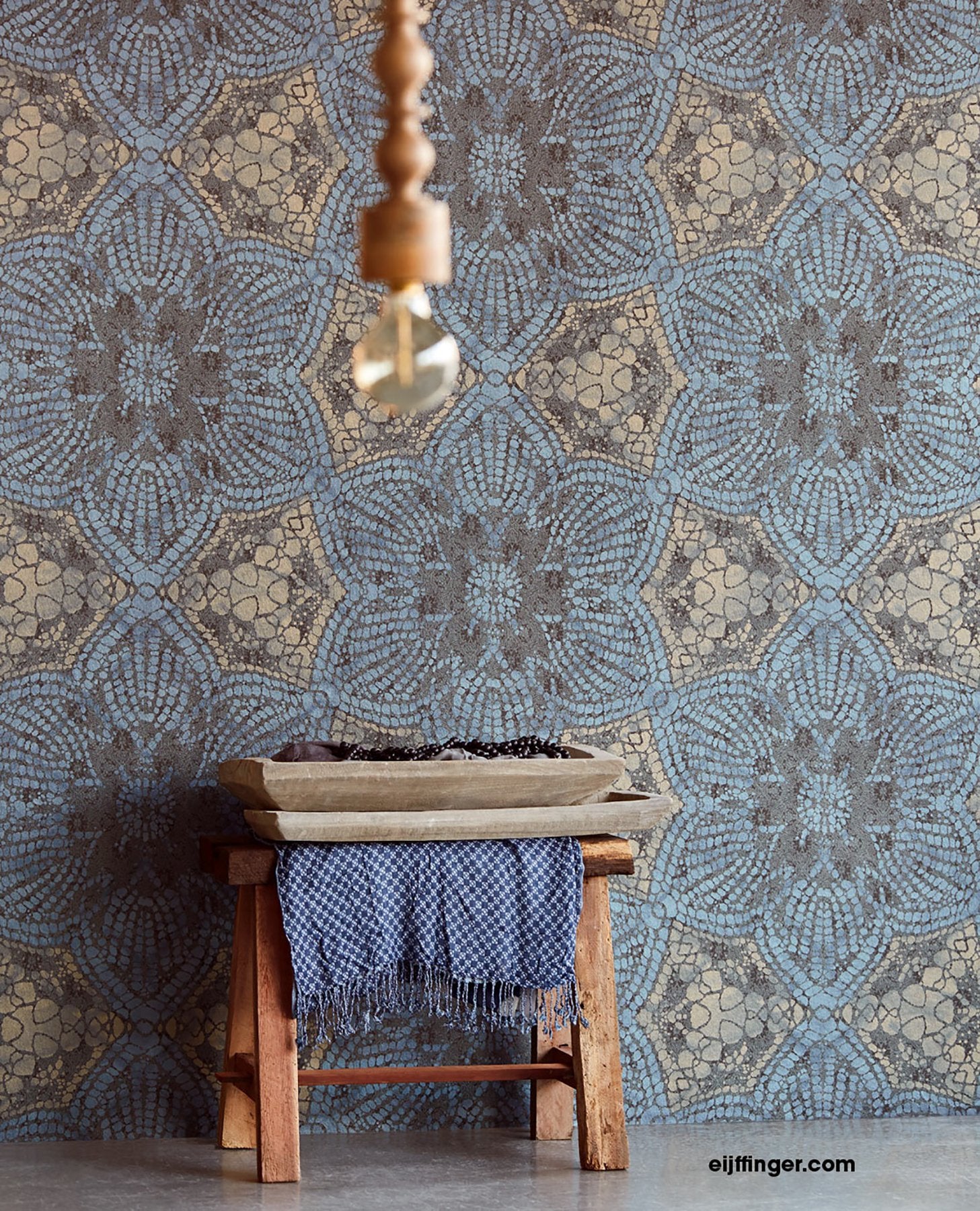 Detailed Name: Eijffinger 110.4-in by 83.5-in Indigo Boho Flower Mural