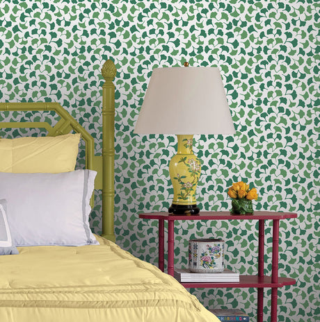Forest Glade Forest Green Peel & Stick Wallpaper with Botanical Ginkgo Leaf Pattern - York PSW1389RL