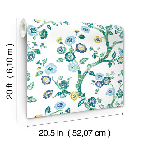 Temple Garden Barbados Green Peel & Stick Wallpaper with Botanical Floral Pattern - York PSW1406RL