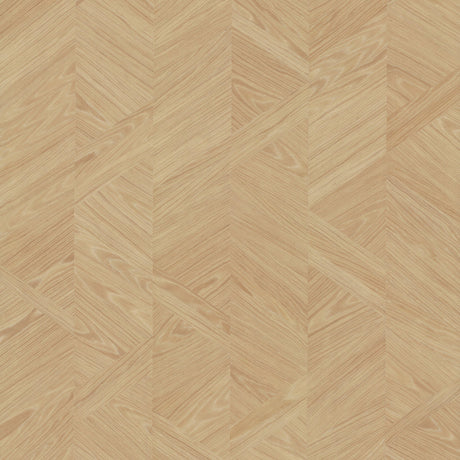 Interlocking Wood Oak Wallpaper with Wood Veneer Chevron Panel Motif - York GV0244