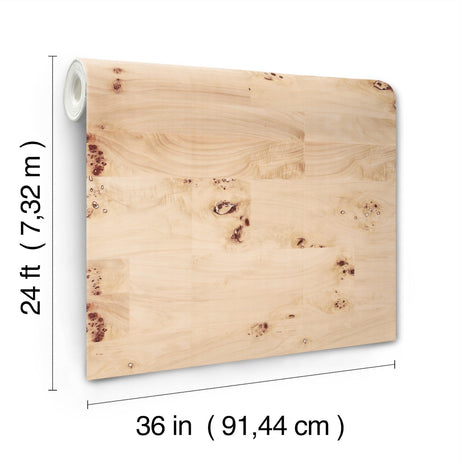 Burlwood Natural Wallpaper with Metallic Wood Veneer Feature Wall - York GV0266