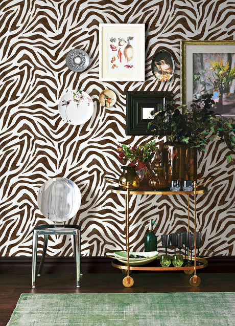 RuZebra Brown Peel & Stick Wallpaper with Glam Zebra Print - NuWallpaper RPS6142