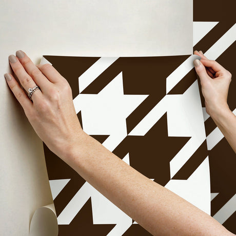 RuHoundstooth Brown Peel & Stick Wallpaper with Modern Geometric Houndstooth Pattern - RPS6148