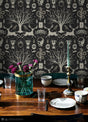 Harry Potter Horcrux Black Damask Peel & Stick Wallpaper with Modern Trees Motif - York RMK12781PLW - Roll is backordered and will ship as soon as it is back in stock.