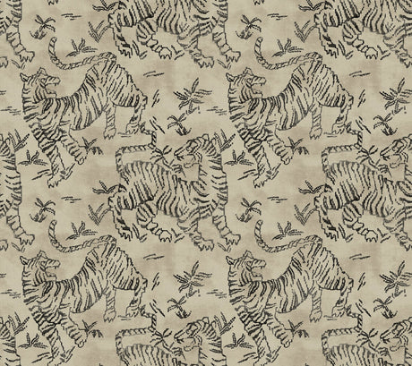 Orly Tigers Taupe Wallpaper with Vintage Animal Motif - York LM5332