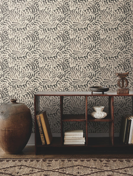 Zora Wave Charcoal Wallpaper with Eclectic Weaves Pattern - York LM5324