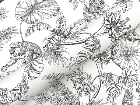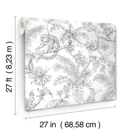 Tropical Sketch Toile Black Wallpaper with Eclectic Toile Pattern - York RT7841