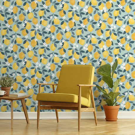 Inigo Sicily Fruits Seafoam by Fine Decor Botanical Fruit Wallpaper – Brewster Home Fashions FD43837