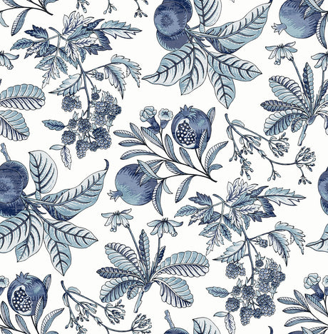 Cecilia Blue Fruit Wallpaper with Botanical Traditional Motif - A-Street Prints 4120-26811