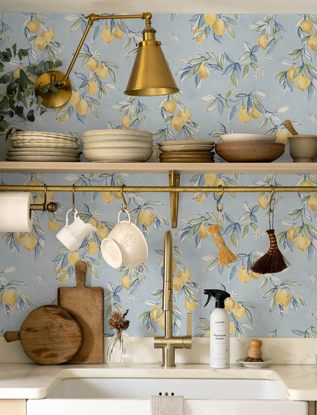Lemonade Light Blue Citrus Wallpaper with Farmhouse Fruit Motif - Chesapeake 4134-72506