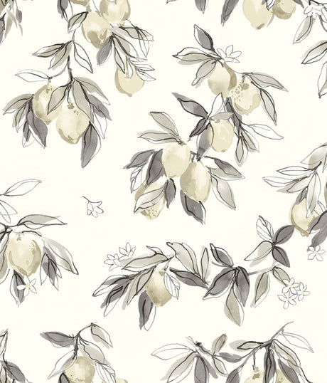 Lemonade Charcoal Citrus Wallpaper with Farmhouse Fruit Botanical Pattern - Chesapeake 4134-72509