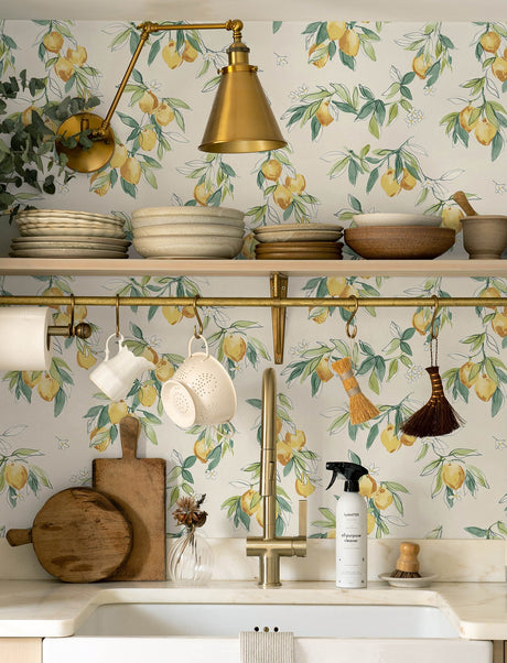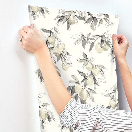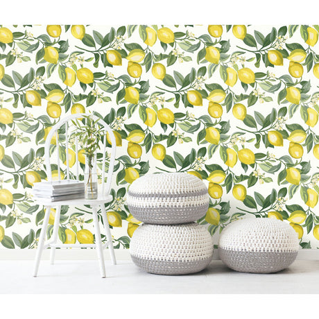 Lemon Zest Yellow Peel & Stick Wallpaper with Fruit Botanical Pattern - RoomMates RMK11655WP