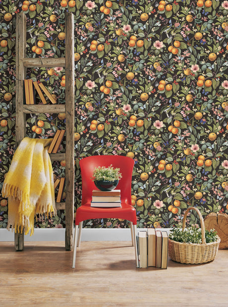 Orange Grove Juniper Peel & Stick Wallpaper with Botanical Fruit Motif - PFS4816