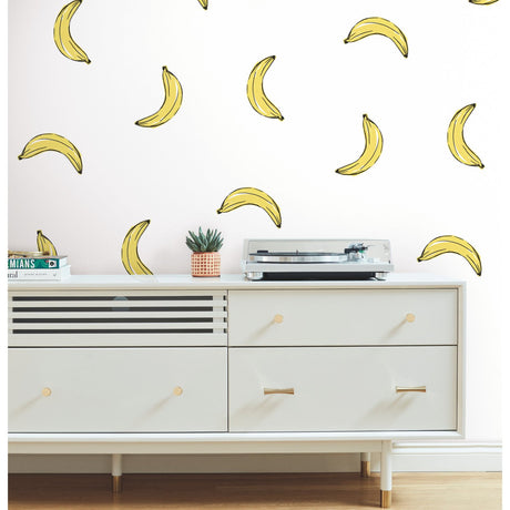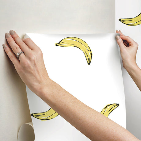 Banana Print Yellow Peel & Stick Wallpaper with Whimsical Novelty Pattern - York RMK12543RL