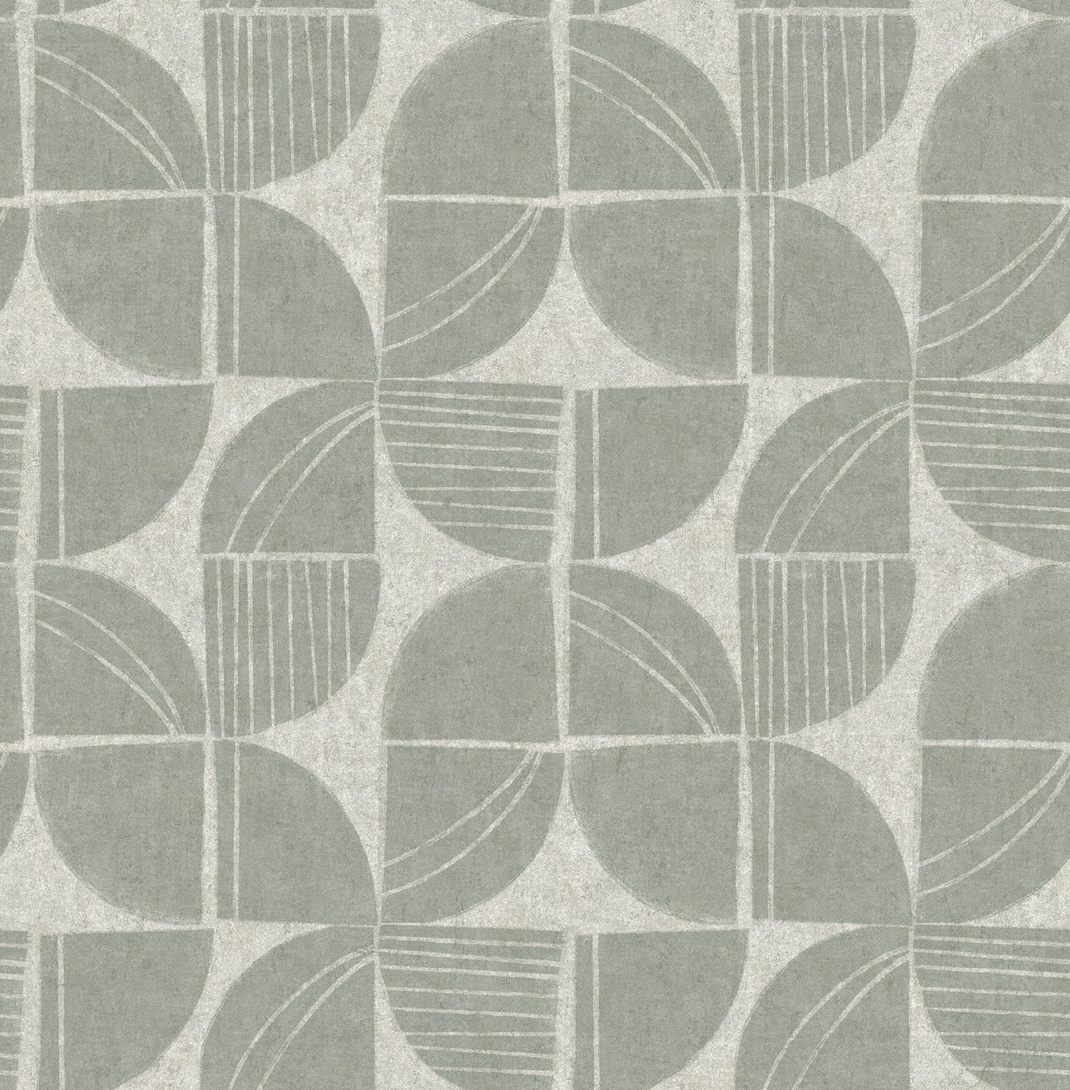 Baxter Sea Green Semicircle Mosaic Wallpaper with Modern Geometric Pattern - Brewster 4141-27113 - Roll is backordered and will ship as soon as it is back in stock.