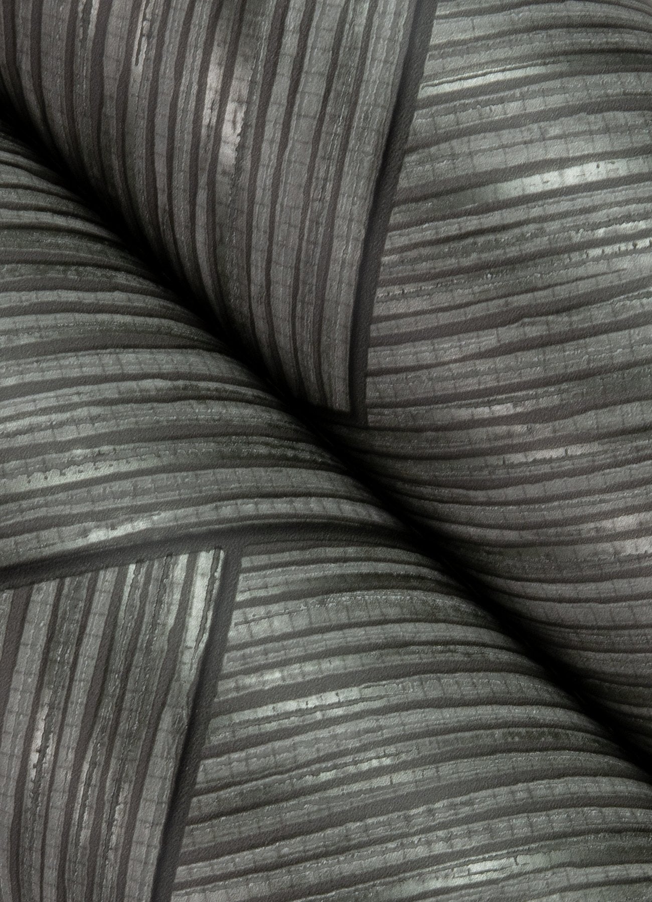 This reimagined faux grasscloth wallpaper will bring an elevated, masculine touch to your interiors. The blend of grey grasses are touched with hints of metallic silver and cut into angular shapes to form a large basketweave design. Ember is an unpasted, non woven wallpaper.