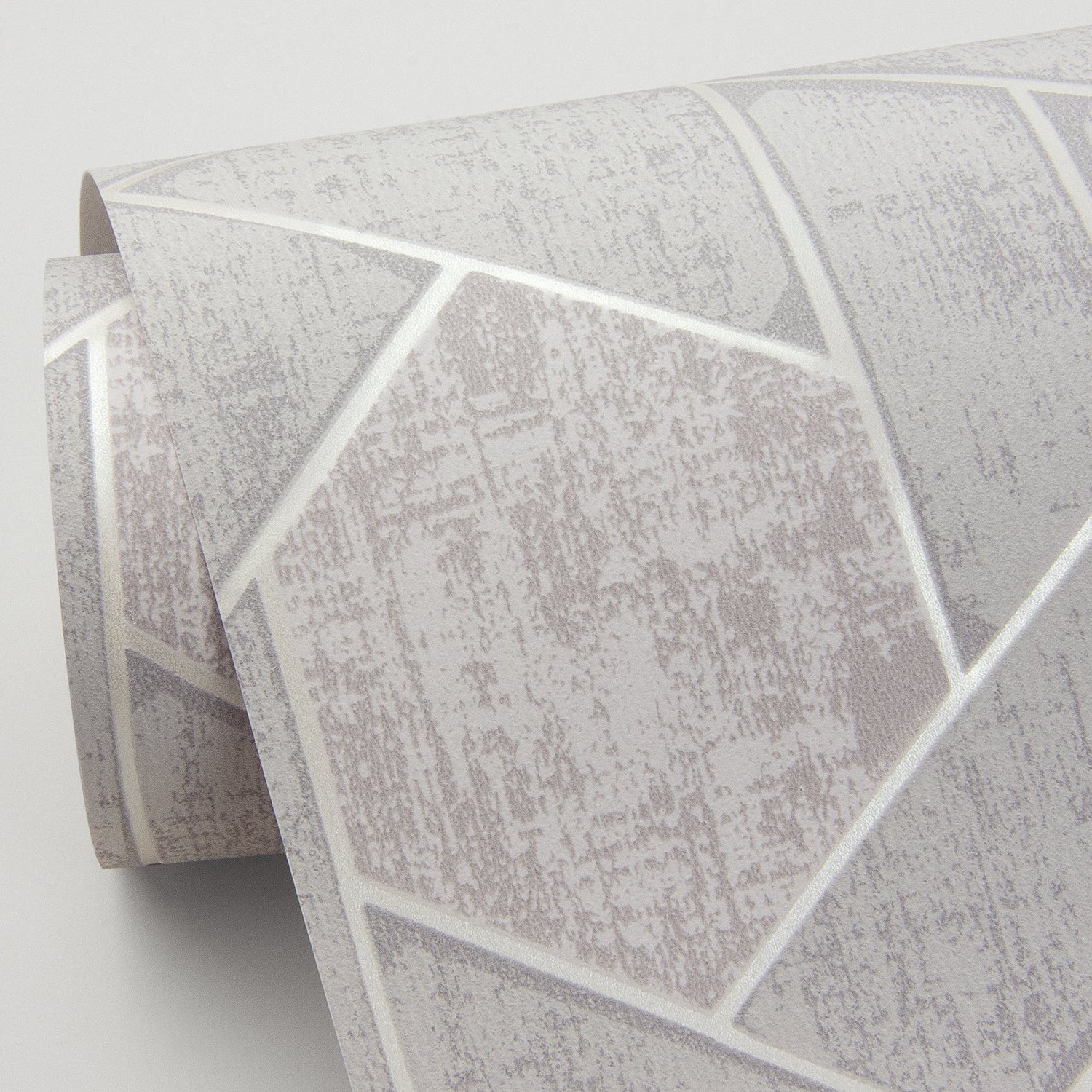 This geometric design has a luxurious twist with its metallic hues. Silver and grey combine effortlessly in this design, breathing new life into any room. Granada is an unpasted, non-woven wallpaper.