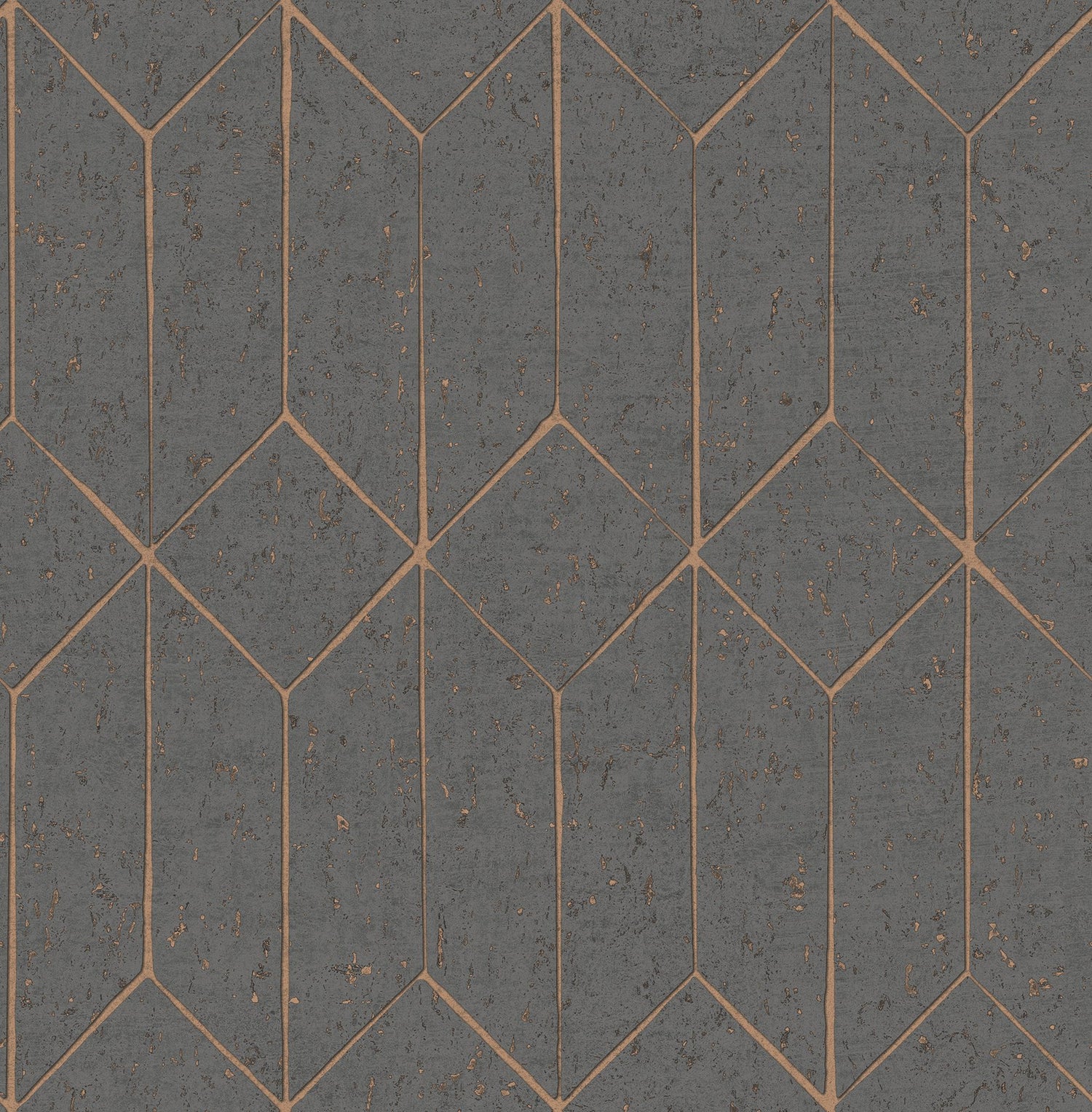 Hayden Charcoal Concrete Trellis Wallpaper with Metallic Geometric Texture - Advantage 4125-26701