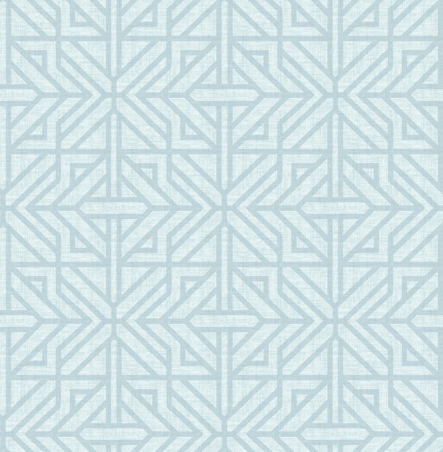 Hesper Sky Blue Geometric Wallpaper with Ornate Geometric on Faux Linen Backdrop - A-Street Prints 4121-26932