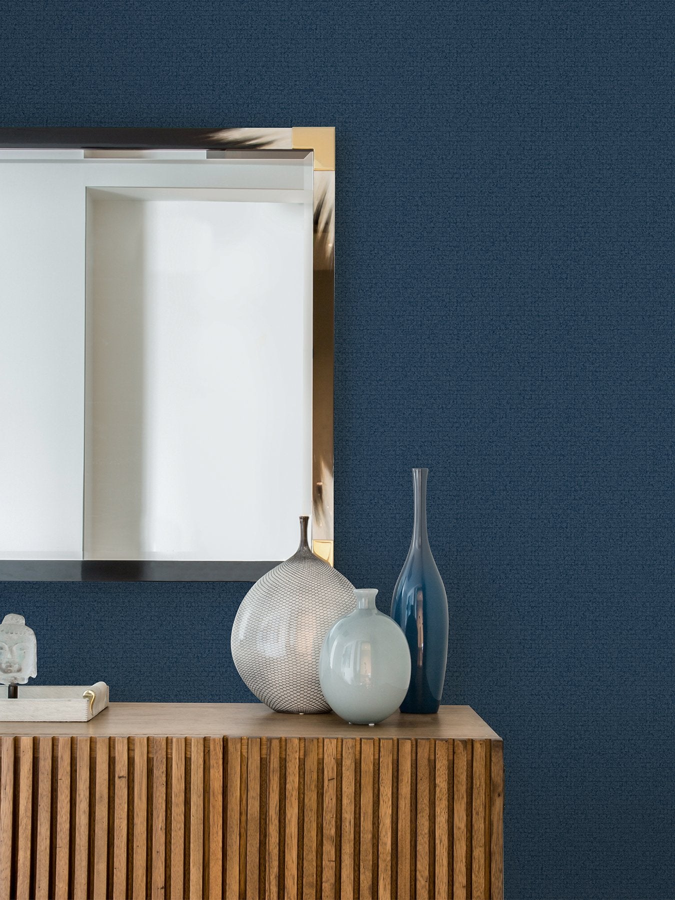 Add a modern-industrial flair to your interiors with this textural wallpaper. Delicate geometric detailing adds subtle dimension to the navy hue's plaster-like texture Hilbert is an unpasted, vinyl on paper wallpaper.