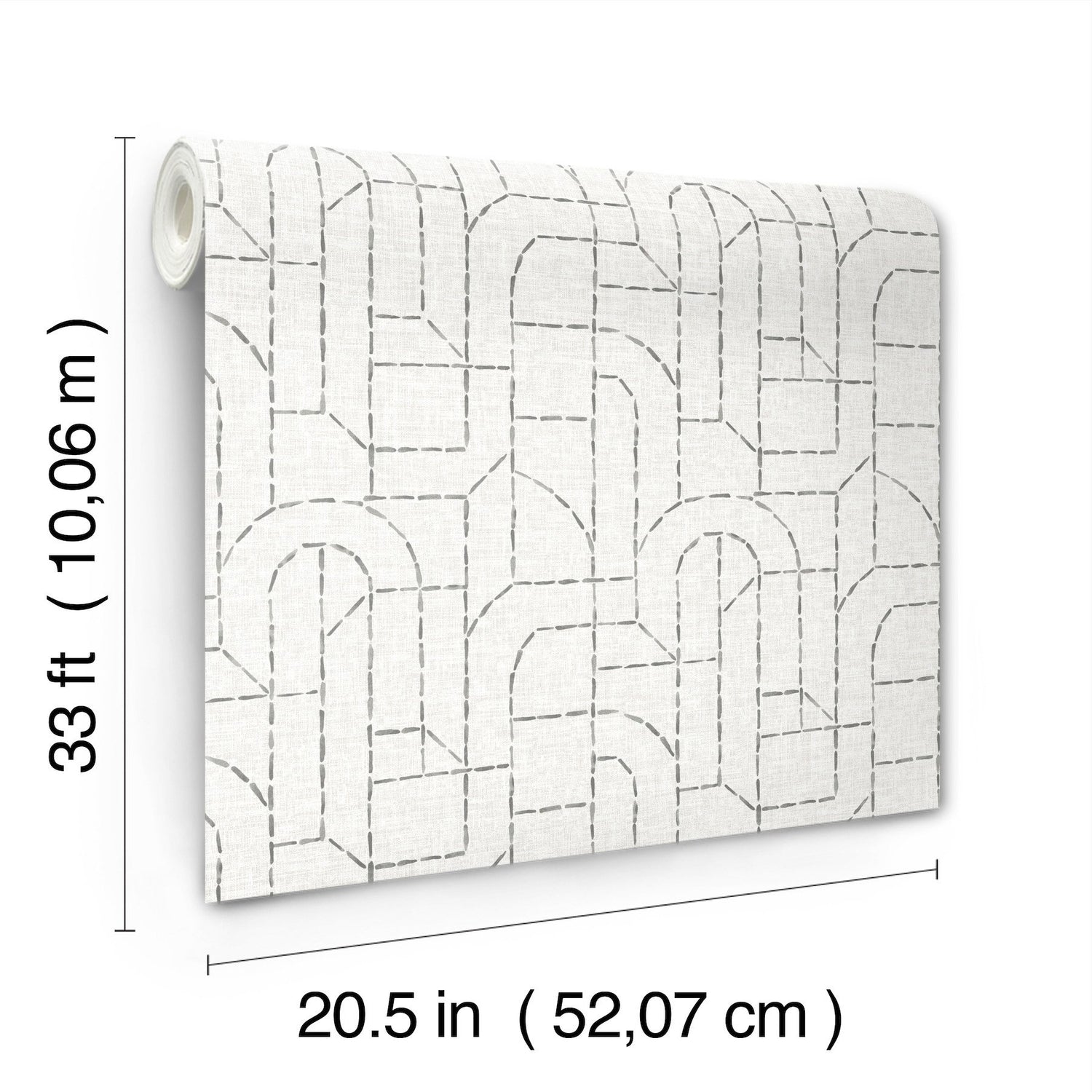 The simplicity of this geometric wallpaper's design is contrasted by its sophisticated details. The grey dashed outlines feature a raised texture, while the white backdrop sports the look of finely woven linen. Integrity is an unpasted, non woven wallpaper measuring 20.5 inches wide by 33 feet long, covering approximately 56.4 square feet per roll.