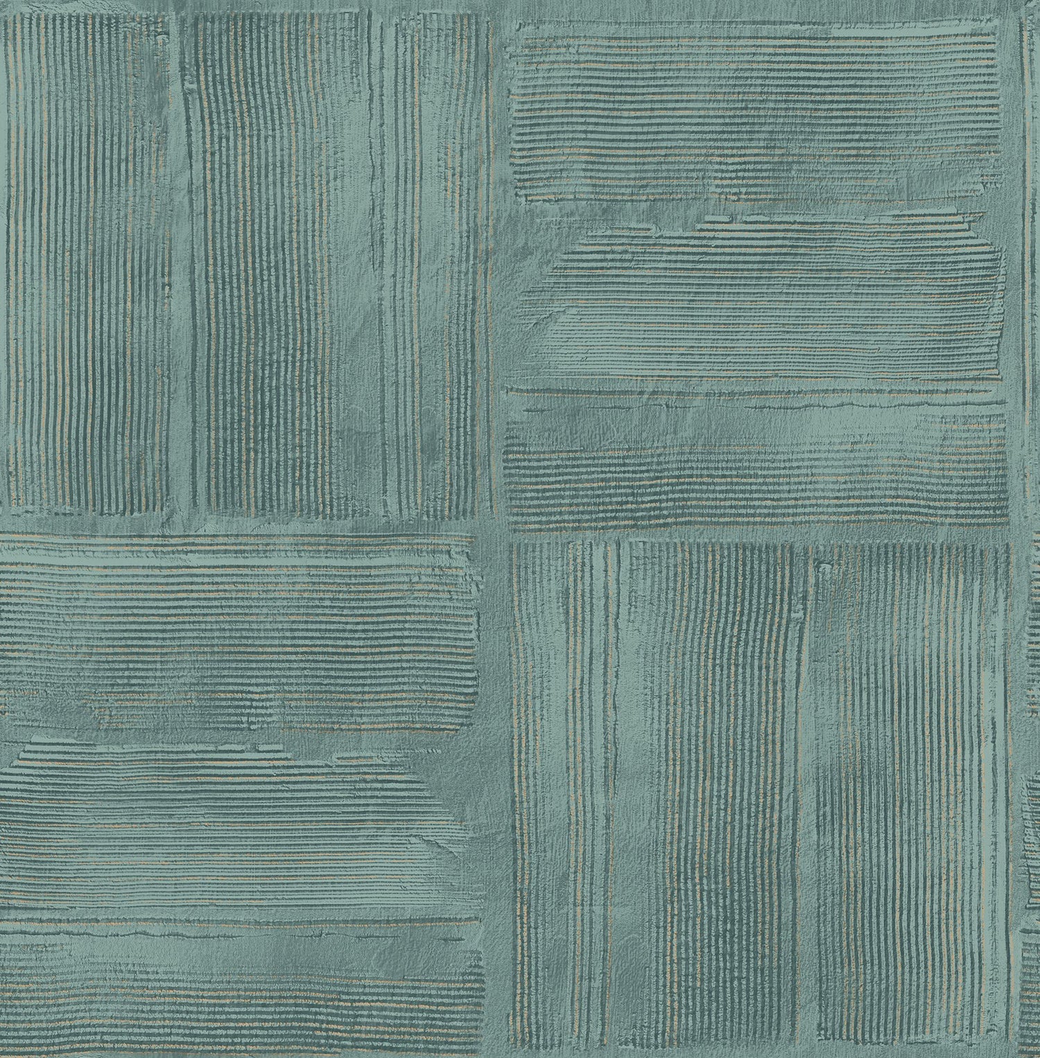 Jasper Teal Block Texture Wallpaper with Metallic Raised Ink Geometric Bohemian Style - Advantage 4125-26737